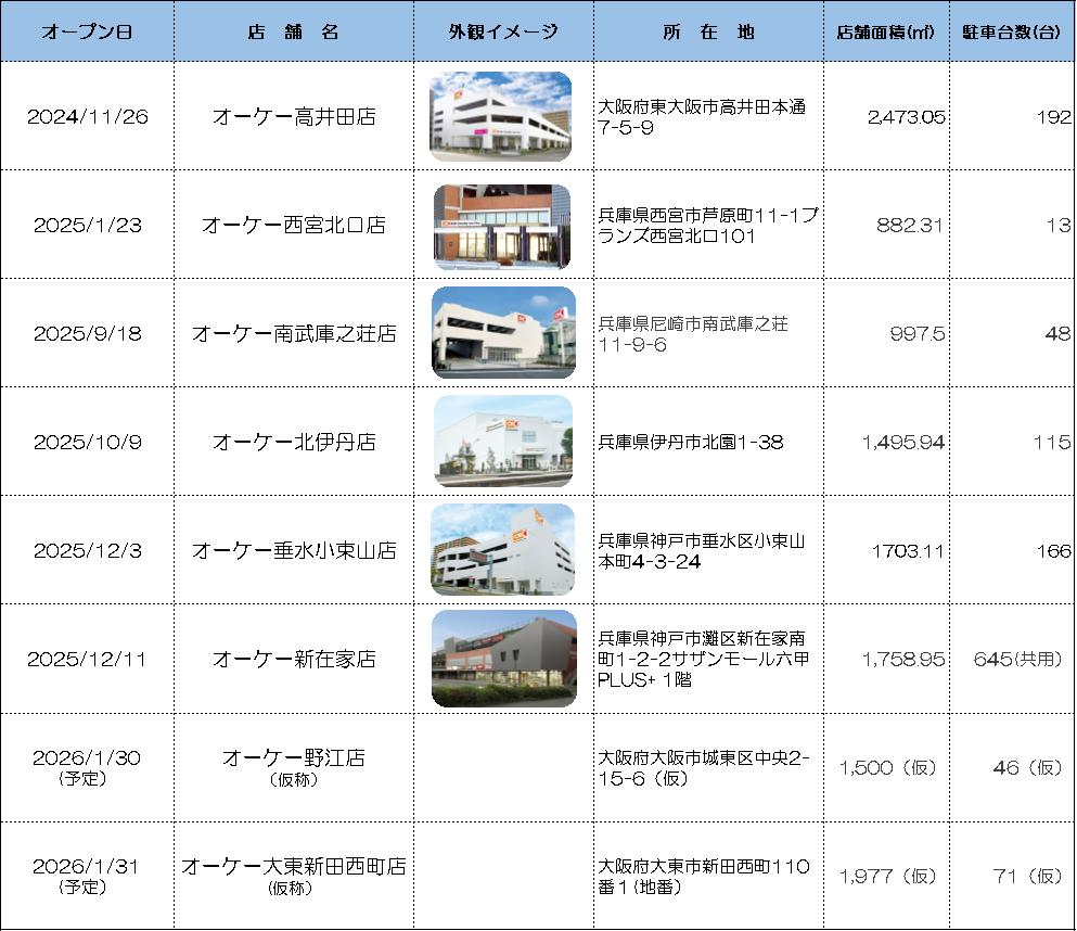 2026年には1月の「野江店(仮称)」「大東新田西町店(仮称)」オープンを皮切りに、今回紹介した「今川店(仮称)」をはじめ計8店舗の出店を予定しています。